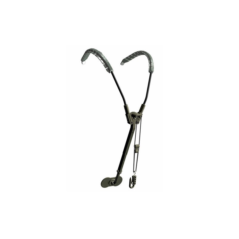 Saxholder es un sistema de soporte moderno diseñado con tres puntos patentados ya que todo el peso del saxo se reparte sobre los dos tirantes acolchados de los hombros y se amortigua con el soporte abdominal.