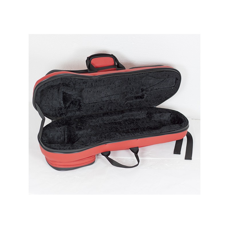 Estuches fabricados con el exterior de polipiel, interior de terciopelo y acolchado de poliuretano inyectado. Mochilas fijas, bolsillos y dos asas con manopla. Cabe con la sordina. Medidas externas: 62x20x17cm. Peso: 2,22 Kg.