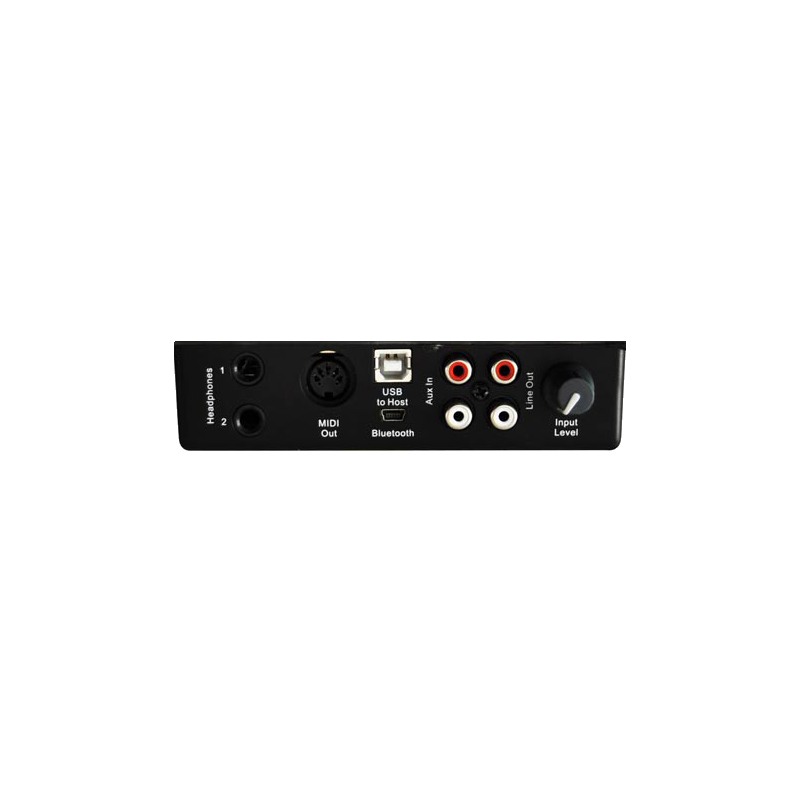 Conexiones: AC Power, MIDI out, Line in/out, USB MIDI, USB AUDIO. Imput level USB to host, Bluetooth, pedal.
